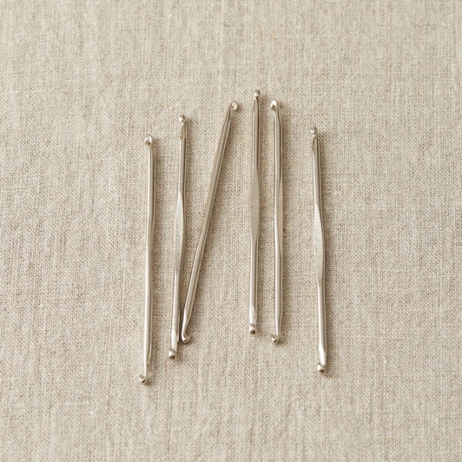 Cocoknits Stitch Fixer is a handy little double-ended crochet hook that can be used to pick up dropped stitches - it works for most of your knitting project repairs. It is made of nickel plated steel, sticks to your Cocoknits Maker's Keep, and is always within reach!