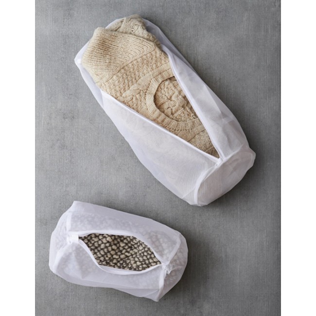 - two fine mesh, zippered laundry bags (small: 8" × 12 × 8", large: 8" × 22" × 8")
