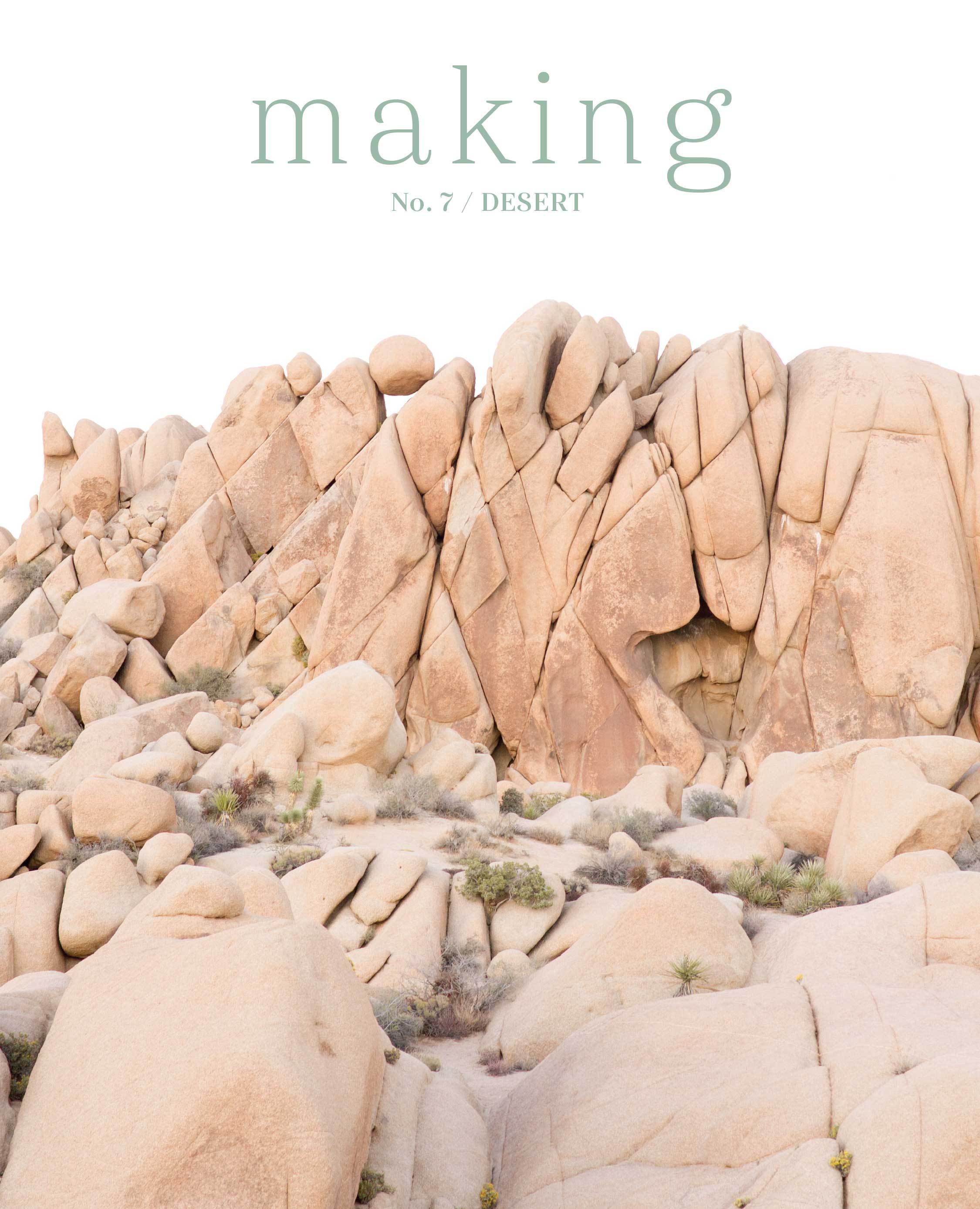 No. 7 / DESERT, includes projects by Kim Hamlin, Lauren Holton, Sanae Ishida, Carolyn Friedlander, Aaren Lisbeth Ross, Kristine Vejar, Maddison Wilkerson, Lauren Patterson, Lupine Marshak, Cal Patch, Arounna Khounnoraj, Rae Hoekstra, Heidi Gustafson, Ellen Johnson, Julie Weisenberger, Amy van de Laar, Paula Pereira, Fiona Alice Blanchard, Norah Gaughan, Susan B Anderson, Helga Isager, Bristol Ivy, and Carrie Bostick Hoge.