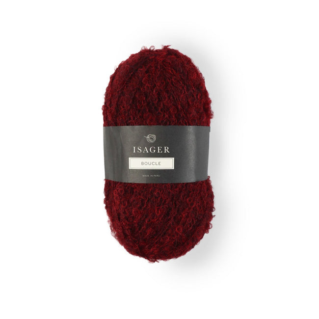 Isager Bouclé works best when held together with other yarns. It gives an exciting and elevated effect compared to the smooth yarns it is knitted together with. Isager Bouclé is therefore nice to use for stripes or as a figure in double knitting or jacquard knitting. In structured knits such as ribbing, it would be difficult to make out the pattern.